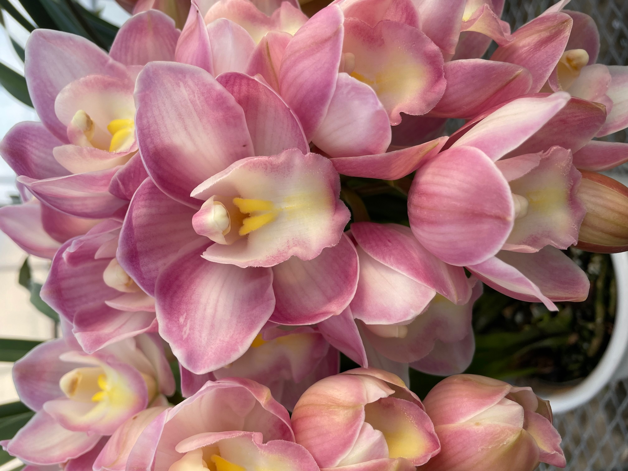 ピンクのとってもかわいいシンビジュームです。